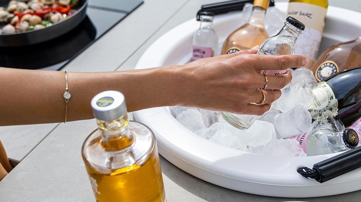 Champagner, offene Weine und Wasser brauchen eine kühle Lösung, damit sie, auch wenn es heiß her geht, schnell griffbereit sind und für Erfrischung sorgen. Et voilà!