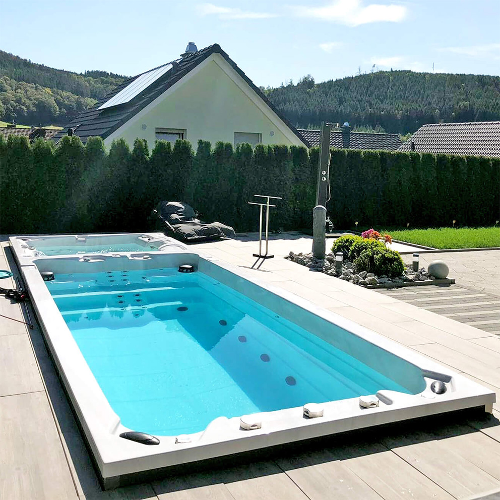 Erleben Sie das ultimative Relaxen mit den Whirlpools und Swim Spas von Infinitas! Diese exklusiven Designerobjekte sind eine Kombination aus innovativer Technologie und erstklassiger Gestaltung, die für eine unvergleichliche Wellness-Erfahrung sorgen. Auf diese Art wird Ihr Grundstück gleichermaßen zum Entspannungs- und Erlebnisbereich für Familie und Freunde.