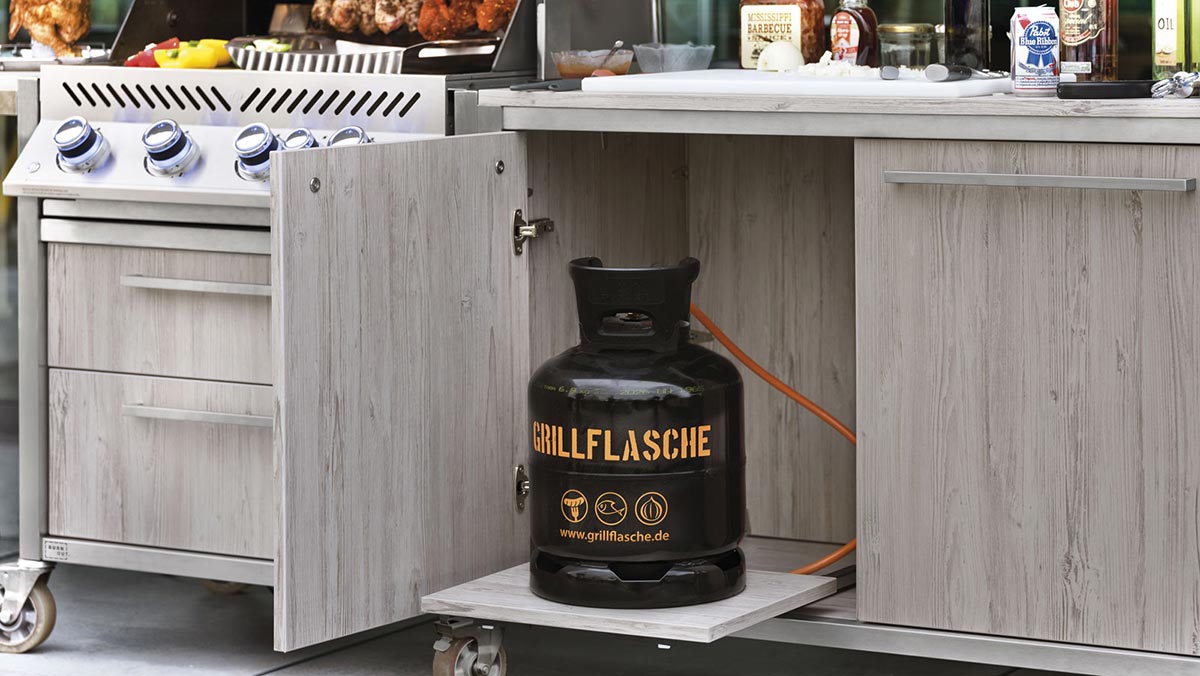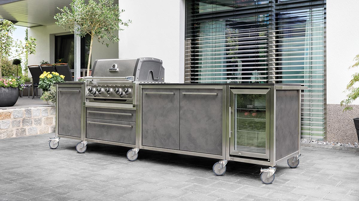 Die Möglichkeiten für Kombination und Erweiterung sind fast unbegrenzt, und die Verarbeitung einer BUNRNOUTBBQ und BURNOUTLUX ist selbstverständlich stabil, wasser- und witterungsfest sowie UV-beständig. Außerdem wird darauf geachtet, dass die Küche so leicht wie möglich bleibt, um sie problemlos bewegen und auch auf dünneren Balkonböden aufstellen zu können.